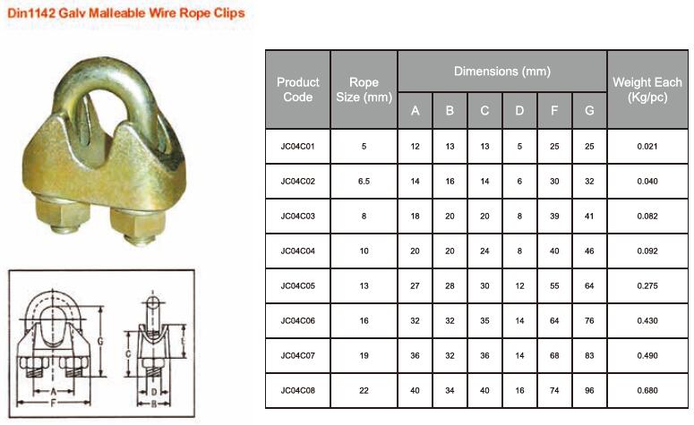 Din1142 Galv Malleable Wire Rope Clips
