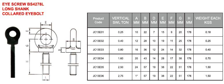 Eye Screw BS4278L Long Shank Collared Eyebolt