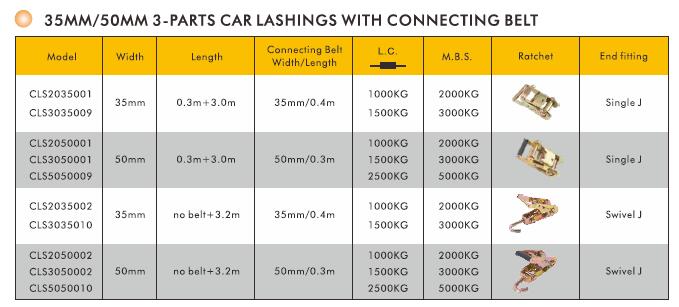 3-Part Car Lashings With Connecting Belt