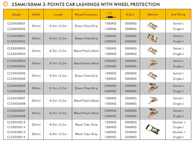 3-Point Car Lashings With Wheel Protection